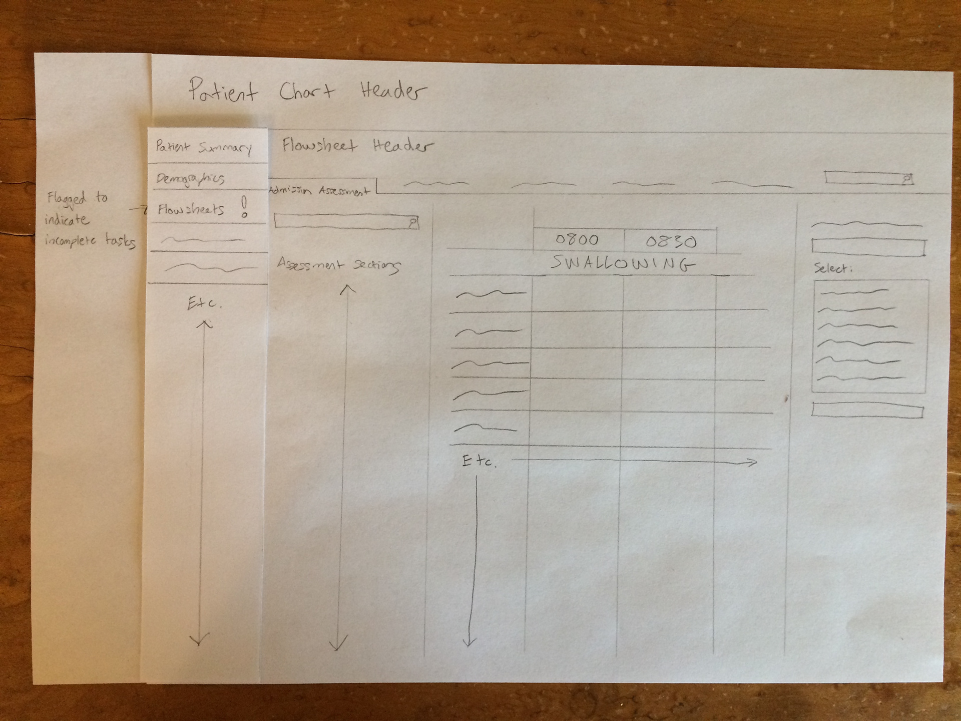 Difficulty swallowing is a common symptom of a stroke. At my client’s hospital, only 54% of patients who were admitted for a stroke were screened for a swallowing problem. They brought me in to design a tool for Epic, their electronic medical record system, to help nurses screen patients more consistently. I conducted a contextual inquiry and learned users have a large number of tasks to do in a short time and are frequently interrupted, which makes it difficult for them to complete the screenings consistently.